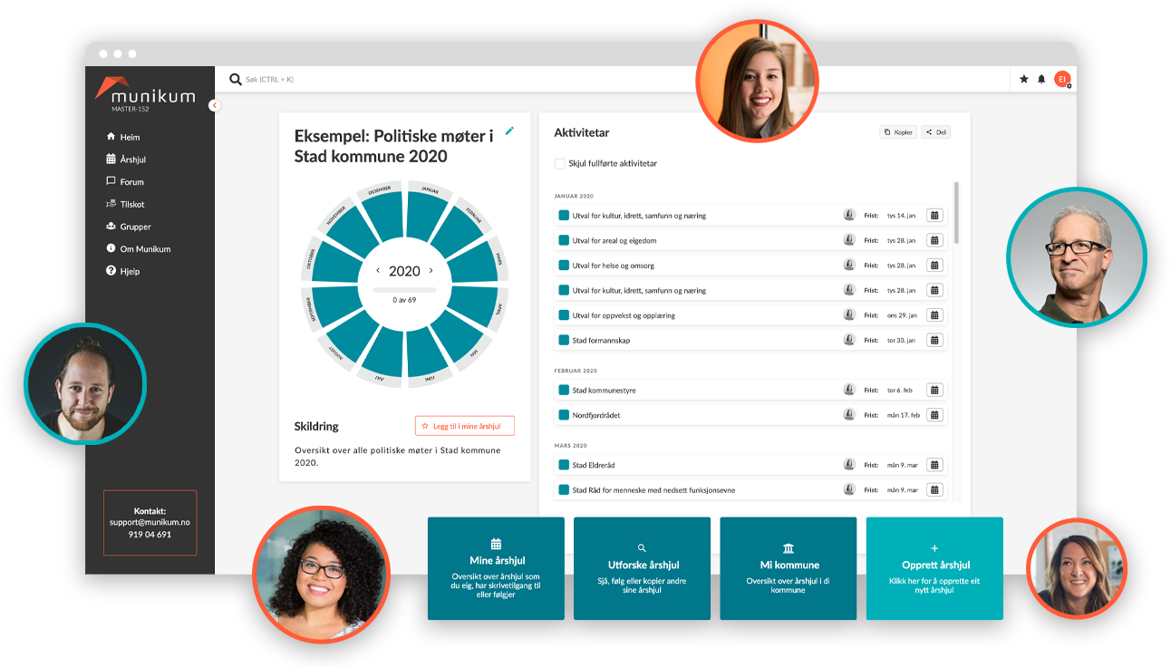 Hald deg oppdatert på framdrift og framtidige prosessar gjennom ei enkel og brukarvenleg oversikt. Del ditt årshjul enkelt med innbyggjarane på kommunen sine heimesider eller i sosiale medier.